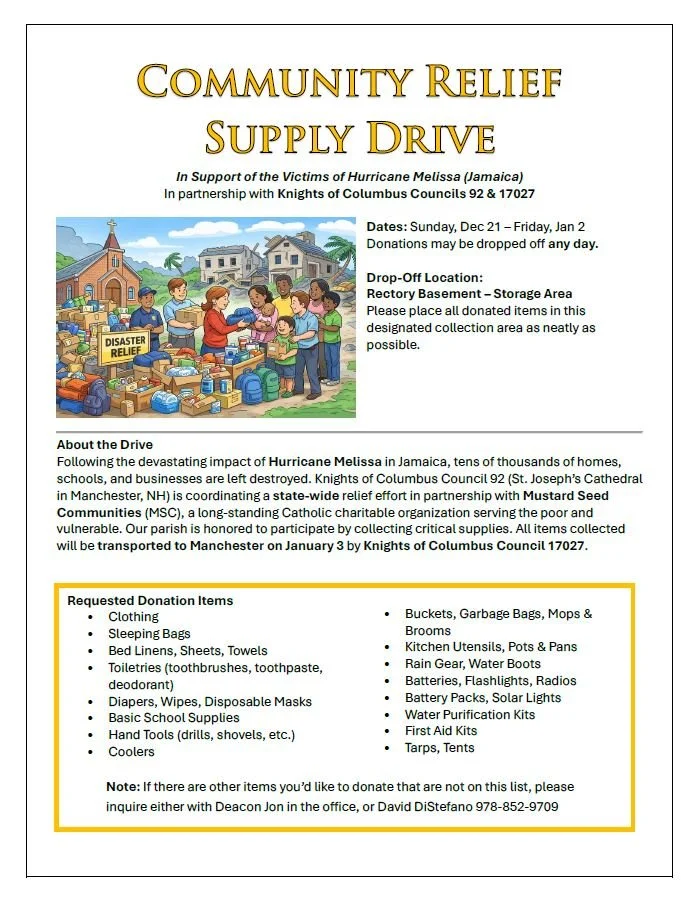 Announcement: Hurricane Melissa Supply Drive Dec 19 Written By Stanislaus Knights Stanislaus Knights https://stanislausknights.org